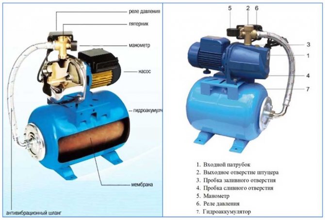 Инсталираният в системата резервоар за съхранение от затворен тип решава проблема, тъй като водата, изпомпвана в мембранния резервоар, вече е под налягане, което означава, че ще действа върху цялата водопроводна линия. Тоест, докато има налягане в резервоара, помпата няма да изпомпва вода, включването и изключването ще спадне до минимум. Освен това самият резервоар за акумулатор изглажда налягането в мрежата при стартиране на помпата. И това е липсата на хидравлични удари, които могат да деактивират цялата водоснабдителна система.