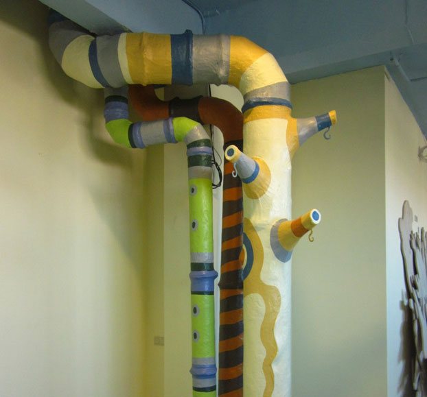 В кухнята например можете просто да нарисувате щранг в цвета на декорацията на стената. Това може да не е много изразително от гледна точка на естетиката, но този вид покритие ще осигури влагоустойчивостта на тръбата и нейната издръжливост на температурни удари, а също така гарантира абсолютна безопасност за човешкото здраве.