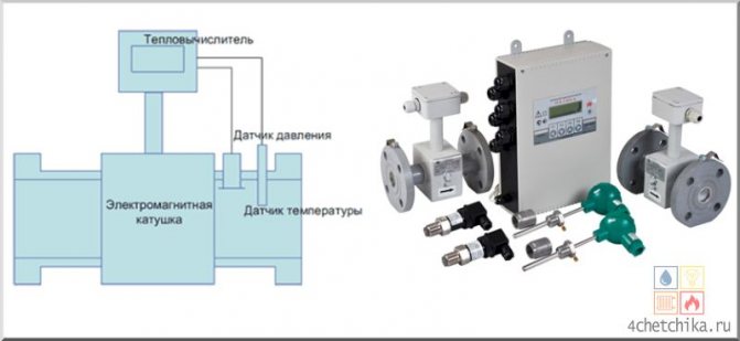 Това е скъп модел на отоплителни устройства и принадлежи към най-точните устройства. Принципът на действие на електромагнитния измервателен уред е преминаването на охлаждащата течност през устройството, докато електромагнитното поле провежда слаб ток. Това устройство трябва да се обслужва, т.е. периодично да се почиства.