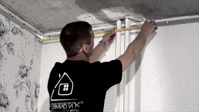 - Когато се правят разфасовките, свободно висящият плат се прибира под опънатия таван по такъв начин, че посоката му да съвпада с посоката на тръбата.