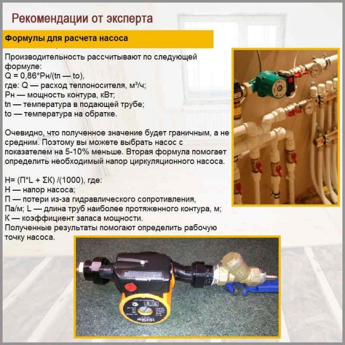 Точно изчисление на основните характеристики на помпа за топъл под може да се направи въз основа на следното равенство: