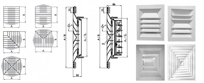 Кутиите за инсталиране на такива устройства са много компактни и практически невидими на повърхността. Поради формата си, те ви позволяват да регулирате посоката и ъгъла на въздушните потоци.