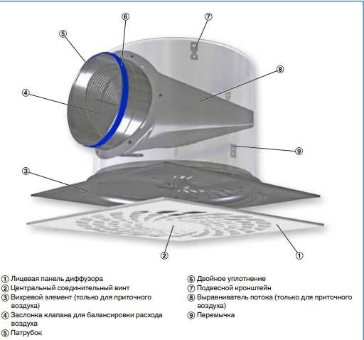 Препоръчително е да се монтира дифузор за вентилация във всички помещения, оборудвани със система за подаване на чист въздух. Устройствата Vortex са инсталирани под формата на декоративни довършителни панели с различни форми и цветове. За да се постигне най-висока ефективност в експлоатация, дифузорите се монтират с помощта на специално уплътнение.