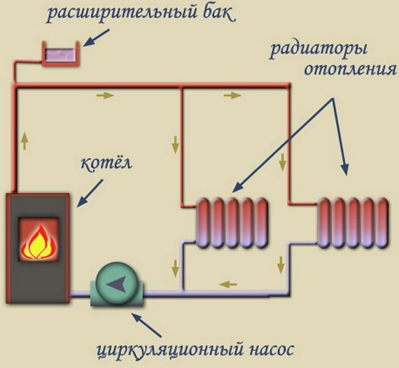 Разликата между схемата с принудителна циркулация е инсталирането в помпената система