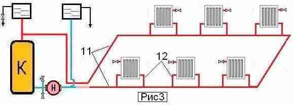 Схема на двутръбна отоплителна система на едноетажна къща