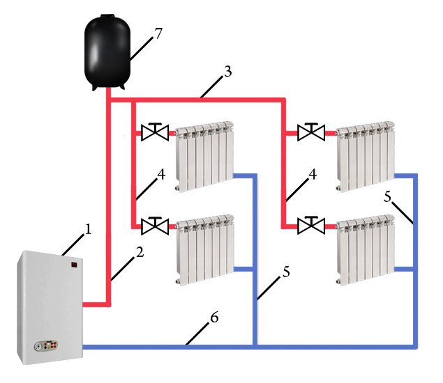 - Степента на нагряване на радиаторите се регулира чрез последователно или паралелно свързване на тези елементи към системата.