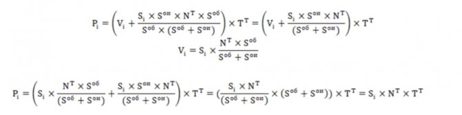 - Pi = (Vin + Viun x Si / Srev) x TKP, където