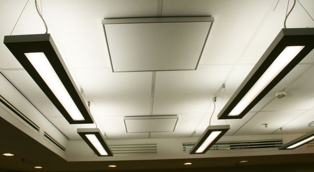 Таванните инфрачервени панели не заемат много място. Те могат да се използват в помещения с височина над три метра. Те се отличават с тяхната тиха работа, екологична безопасност и способността да организират отопление на определена зона. Панелите за отопление на помещенията са лесни за инсталиране и експлоатация. Някои производители на касетъчни тавани допълват своите продукти със специални нагреватели.