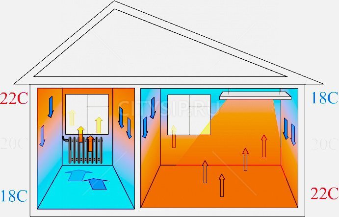 - Разликата между температурата на въздуха близо до тавана и пода е намалена до минимум.