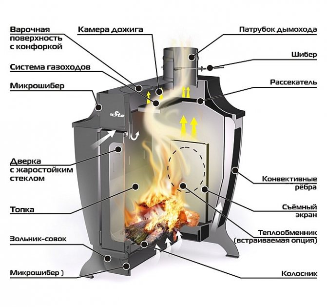 - ефективно разсейване на топлината; Ефективността на такива устройства е сравнима с ефективността на газовите отоплителни устройства и е значително по-висока от ефективността на печките на дърва;