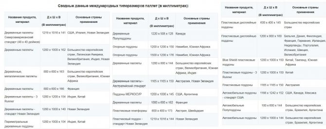 Различни стандарти за палети се използват в промишлеността и производството. Най-често:
