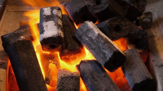 - същата интензивност на горене; за разлика от дърва за огрев, пресованите блокове горят равномерно; освен това дори въглищата могат да отделят същото количество топлина като „пресния“ брикет;