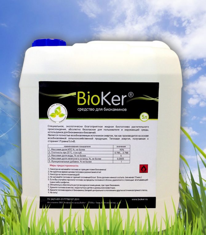 - Биоетанол, денатуриран алкохол с някои добавки за реалистичен огън.
