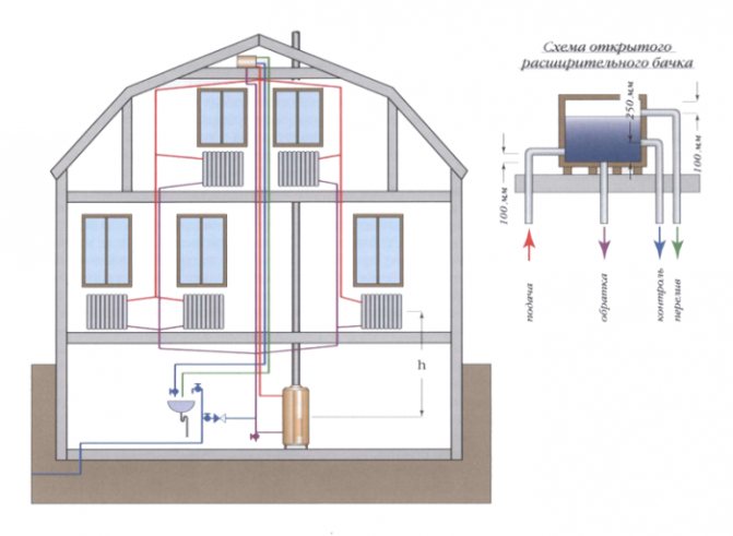 - тръба от горната линия се изважда от резервоара, която отива към всички радиатори;