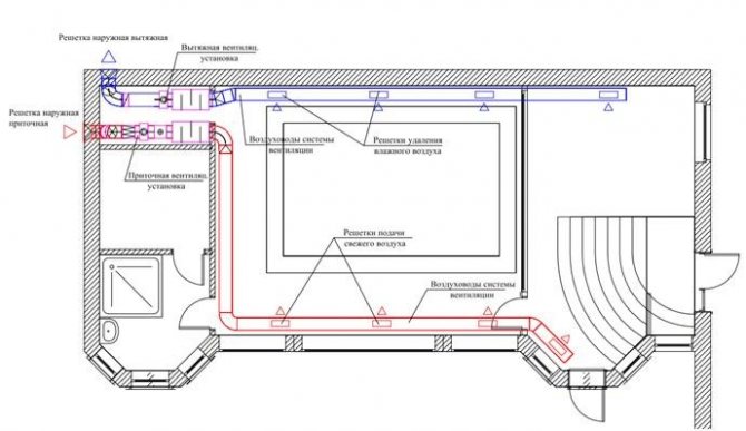 Стандартна схема на захранваща и изпускателна вентилация с отопление