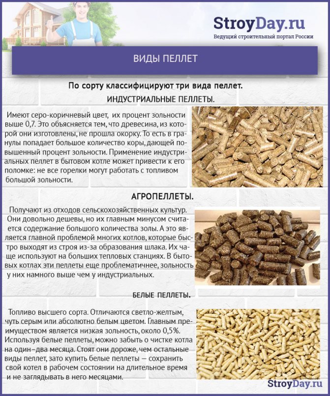 Разбира се, различните суровини дават различни характеристики на получените пелети - по отношение на тяхната енергийна мощност, съдържание на пепел (количеството на останалия негорим компонент), влажност, плътност и цена. Колкото по-високо е качеството, толкова по-малко неприятности с отоплителните уреди, толкова по-висока е ефективността на отоплителната система.