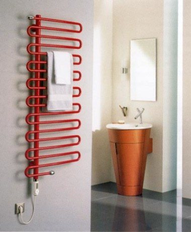За разлика от другите стаи в баните, отоплителният радиатор служи и като подложка за отопление на кърпи. Формата му е направена по такъв начин, че е възможно удобно да се закачат на тръбите не само кърпи, но и други неща, които се овлажняват по време на водните процедури. Красивата модерна подложка за отопляеми кърпи може да бъде поразителен декоративен елемент на банята, ако е подбрана с вкус.