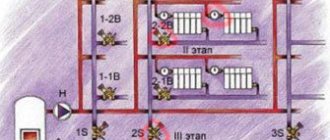2. Еднотръбна система или "Ленинградка" Счита се за най-добрият начин за изграждане на граждански отоплителни комплекси с топлинна мощност до 30–35 kW.