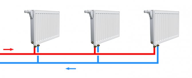 Отличителна черта на структурата на конструкцията на двутръбна отоплителна система се състои от две тръбни разклонения.