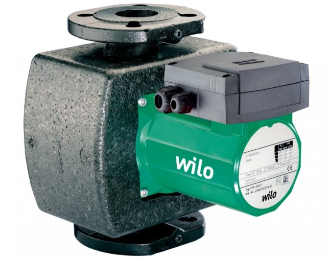 Благодарение на специалните свойства на помпата Wilo, ефективността на отоплителната система е значително увеличена. В този случай могат да се използват тънки тръби, което от своя страна спомага за намаляване на разходите за материал и гориво. Също така, когато се използва помпа, обемът на въглеродния диоксид, който се излъчва в атмосферата, намалява, а дневната консумация на електрическа енергия е не повече от 250 вата.