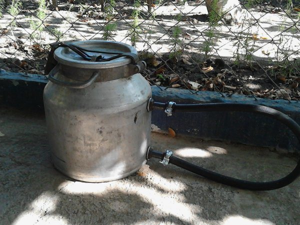 - използва се готов контейнер, като голяма тенджера, бутилка с мляко или консерва за 12-15 литра или повече;
