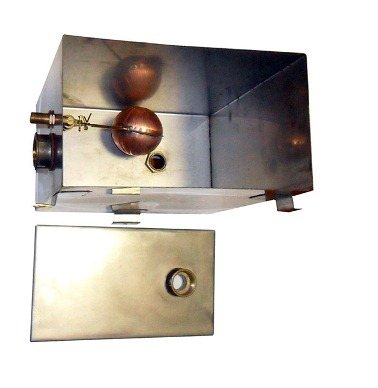 Формата на резервоара може да бъде или кръгла, или правоъгълна, всъщност няма значение. Просто правоъгълният резервоар е малко по-лесен за изработка. В същото време, при големи обеми течност, квадратният резервоар ще изисква укрепване на стените, което прави цялата конструкция по-тежка. Но тя трябва да бъде отведена на тавана. Кръгъл съд може да се направи от тръба, но е по-трудно да се прикрепи капак към него и капацитетът му ще бъде по-малък.От вас зависи да изберете.