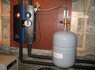 Важно: в допълнение към разширителния резервоар, в системата обикновено се монтира предпазен клапан за облекчаване на излишното налягане. Осигурява допълнителна застраховка срещу превишаване на работното налягане. Също така е добра идея да монтирате манометър до резервоара.