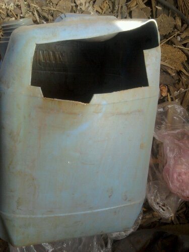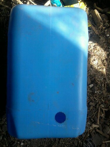 Този контейнер висеше в недовършена стая и ме смути, отдавна исках да го занеса на тавана и изведнъж измислих начин да направя дупка в контейнера и да прикача месингов фитинг, без да изрязвам огромна дупка за ръката за да вмъкнете отвътре. Вземаме контейнер под грунда, взех го за 10 литра, отоплението ми ще бъде достатъчно с резерв: