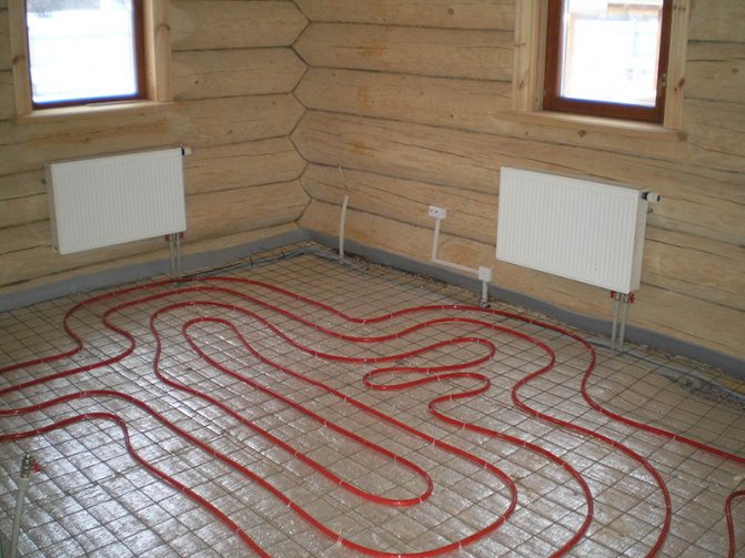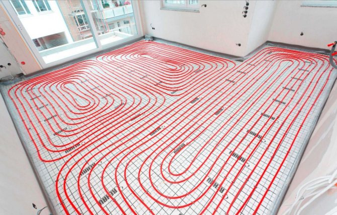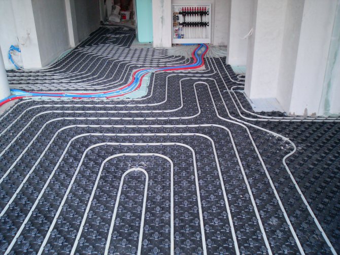 В този случай е необходимо изолационният слой да се допълни с допълнителни панели. Равномерно нагряване може да се постигне със серпентиново нагревателно устройство. Също така е необходимо да се оставят компенсатори, които позволяват на тръбите да се разширяват при нагряване. Едва след това можете да пристъпите към окончателното изливане на бетонната замазка.