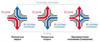 Съществува практика за постигане на определена температура на охлаждащата течност в различни клонове и вериги на CO чрез смесване или разделяне на потоците на охлаждащата течност. Трипътен клапан на отоплителната система играе ролята на устройство, което регулира температурата на работната течност след топлинния генератор.