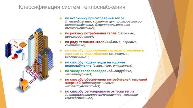 В науката има много възможности за систематизиране на комуникациите в зависимост от изследвания параметър. За нас на първо място е важно да има отворена и затворена система за топлоснабдяване. Той може също да бъде централизиран (в рамките на една четвърт, област, населено място или дори цял регион) и децентрализиран (индивидуален или местен). Според качеството на водоснабдяването системите се делят на общински и индустриални. Общият брой на класификациите е много по-широк, но те не се отнасят за разглежданата тема.