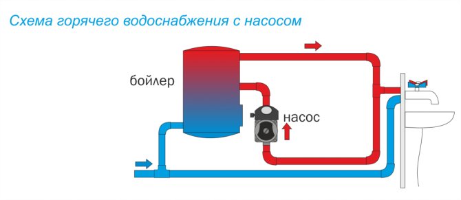За отворена верига за БГВ има вариации - циркулация и безжично окабеляване.Както става ясно от имената на тези схеми, с циркулационна схема горещата вода циркулира през вътрешната система за БГВ и в идеалния случай, когато отворите крана за топла вода, топлата вода трябва да тече оттам почти веднага. Но това е идеално и не винаги е така.