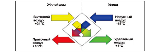 Студеният външен въздух се смесва с топъл въздух, взет от стаята, нагрява се до необходимата температура и след това се подава в стаята