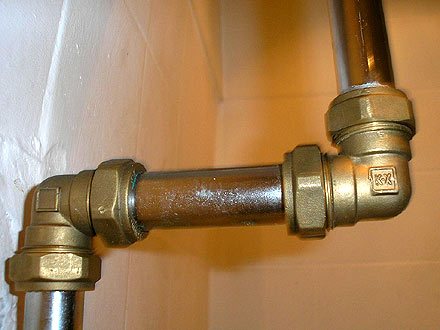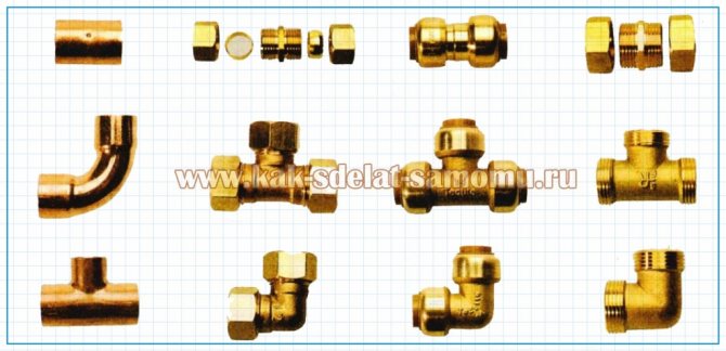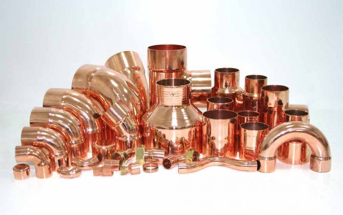 За свързване на медни елементи, фитингите трябва да бъдат избрани от месинг, мед или сплави със съдържанието му.