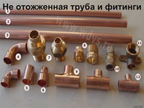 - медни тръби в комуникациите, за създаването на които се използват елементи от различни материали, винаги се монтират след продукти, изработени от черни метали: в посока движение на флуида;
