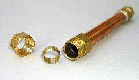 Компресионните фитинги за разширени медни тръби се състоят от втулка и затягаща гайка и са също толкова лесни за използване: