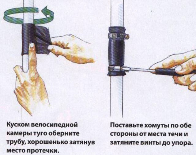 Фистула в тръба за гореща вода или друга система, състояща се от метални тръби, може бързо да бъде ремонтирана по следните начини: