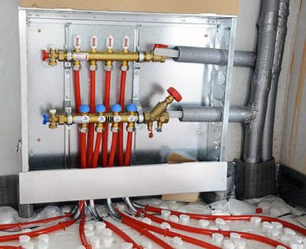 - За да се увеличи индексът на запазване на топлината, тръбите, излизащи под пода в точката на свързване към колекторния блок, могат да бъдат подсилени с топлоизолация.