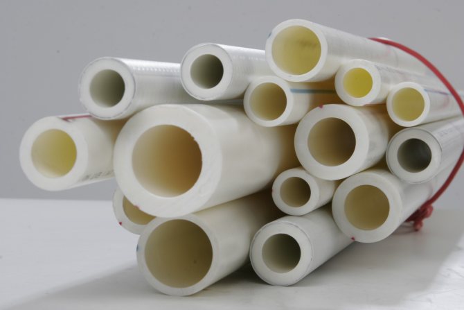Усилените пластмасови тръби се произвеждат в многослойни. Външният полимерен слой на тази тръба предпазва средния слой от механично напрежение. Средният слой е направен от алуминий, което помага да се поддържа формата на тръбата и да издържа на високата температура на охлаждащата течност. Вътрешният слой е направен от полимерен материал, за да предпази тръбата от корозия и отлагания от котлен камък. Идеално гладката вътрешна повърхност на тръбата не възпрепятства транспортирането на охлаждащата течност. И трите слоя се държат заедно със специално лепило. Качеството на лепилото влияе върху експлоатационния живот на целия тръбопровод. Когато този състав изсъхне, тръбата се разслоява и престава да задържа охлаждащата течност.