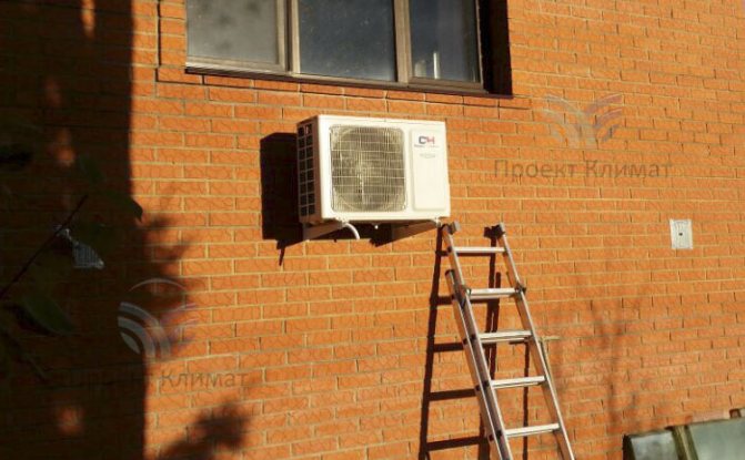 Препоръчително е да инсталирате външното тяло на няколко метра от входа на вилата и далеч от прозорците; не забравяйте за шума, произвеждан от вентилатора.