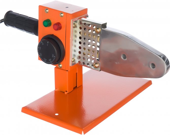 Основната задача на такъв поялник е да поддържа необходимата температура за свързване на полипропиленова тръба с фитинг, а температурата му на нагряване е около 260 градуса.