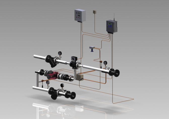 Автоматизиран блок за управление е набор от оборудване и устройства, предназначени да осигурят автоматично регулиране на температурата и дебита на охлаждащата течност, което се извършва на входа на всяка сграда в съответствие с температурния график, необходим за конкретна сграда. Корекции могат да бъдат направени и според нуждите на обитателите.