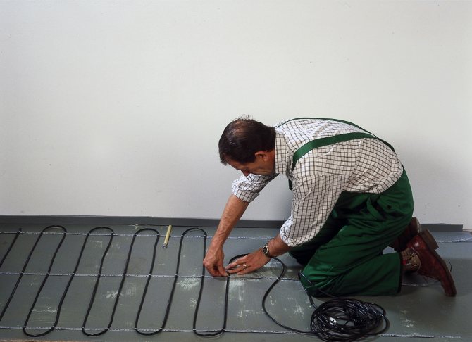 Ако го сравните с полагане на под от кабел, тогава процесът на инсталиране на рогозки ще се извърши от всеки домашен майстор. Постелките лежат без замазка - прилага се лепило. В такава отоплителна система върху решетката се поставя електрически кабел с необходимата стъпка. Благодарение на това остава да отрежете мрежата, да поставите постелките. Основното нещо е да се уверите, че контурите на електрическия кабел не се пресичат помежду си, не се докосват. Недостатъкът на системата е, че тежки предмети (скрин, гардероб) не се поставят върху изтривалките, благодарение на това ще трябва да проектирате предварително подредбата на мебелите в коридора