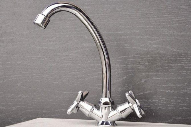 - с един клапан. Тези смесители могат да доставят само един вид вода - студена или гореща. Използва се главно за монтаж в кухнята или умивалника. Корпусът на едноклапанния клапан е направен от медна или месингова сплав. Заключващ механизъм - под формата на керамичен или червячен клапан - мостовата кутия се задвижва от клапан;