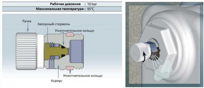 Радиаторните кранове за плавен контрол на температурата имат специален монтаж в дизайна - духало, което отговаря на външните условия