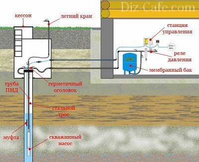 - помпата трябва да осигурява необходимия воден поток, за да отговори на нуждите на потребителя, като се вземат предвид дълбочината на кладенеца и разстоянието до точката на приемане на вода (обикновено мембранен хидравличен акумулатор);