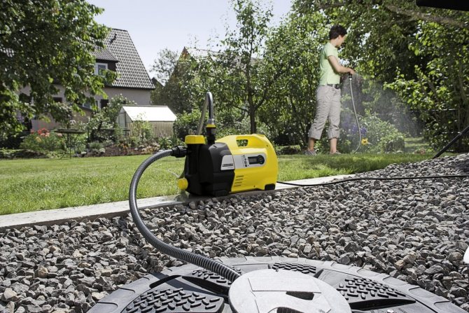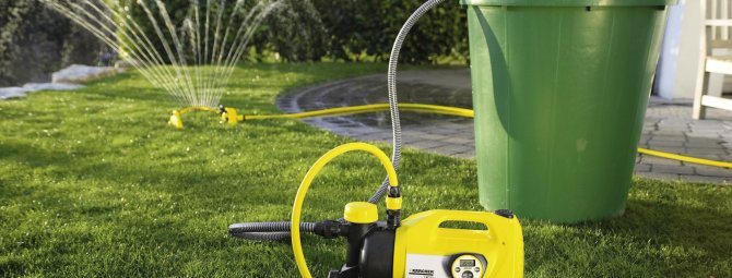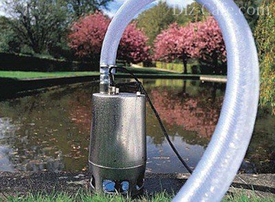 С помощта на повърхностно оборудване е лесно да се организира поливане на растенията от езерцето. За да направите това, при избора на модел е необходимо да вземете предвид, че водата ще идва с частици мръсотия и пясък.