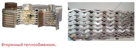 4. По-достъпна услуга. Котел с битермичен топлообменник, ако се образува котлен камък, може да се измие и почисти без никакви проблеми. След това в котел с два топлообменника е практически невъзможно да се промие вторичният топлообменник, поради неговата конструкция: такива топлообменници се състоят от набор от плочи, разстоянието между които е 2-3 mm, и има голяма вероятност при промиване топлообменникът да се задръсти още повече (цената му достига до 150 евро).