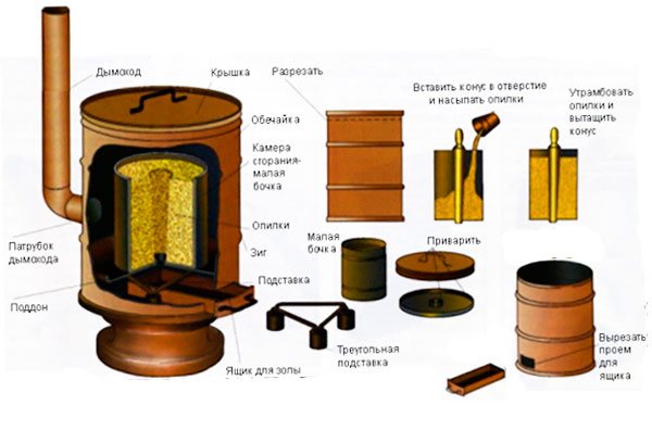 Направи си сам рисунка за направа на фурна за дървени стърготини