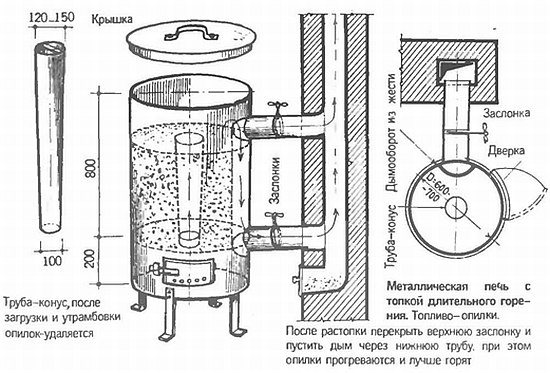 Доста лесно е да направите сами печка на дървени стърготини с дълго изгаряне. Ще бъде незаменим, ако има дървени стърготини, тогава няма нужда да купувате по-скъпо гориво (дърва за огрев, въглища, газ).